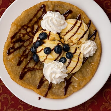 Fry Bread a la Mode: Fry bread served with honey, cinnamon, or ice cream.